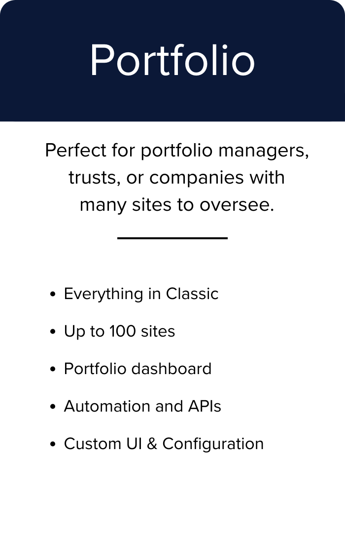 See the whole portfolio in one dashboard. All site information is brought together to give you full visibility of individual progress and portfolio-wide metrics.